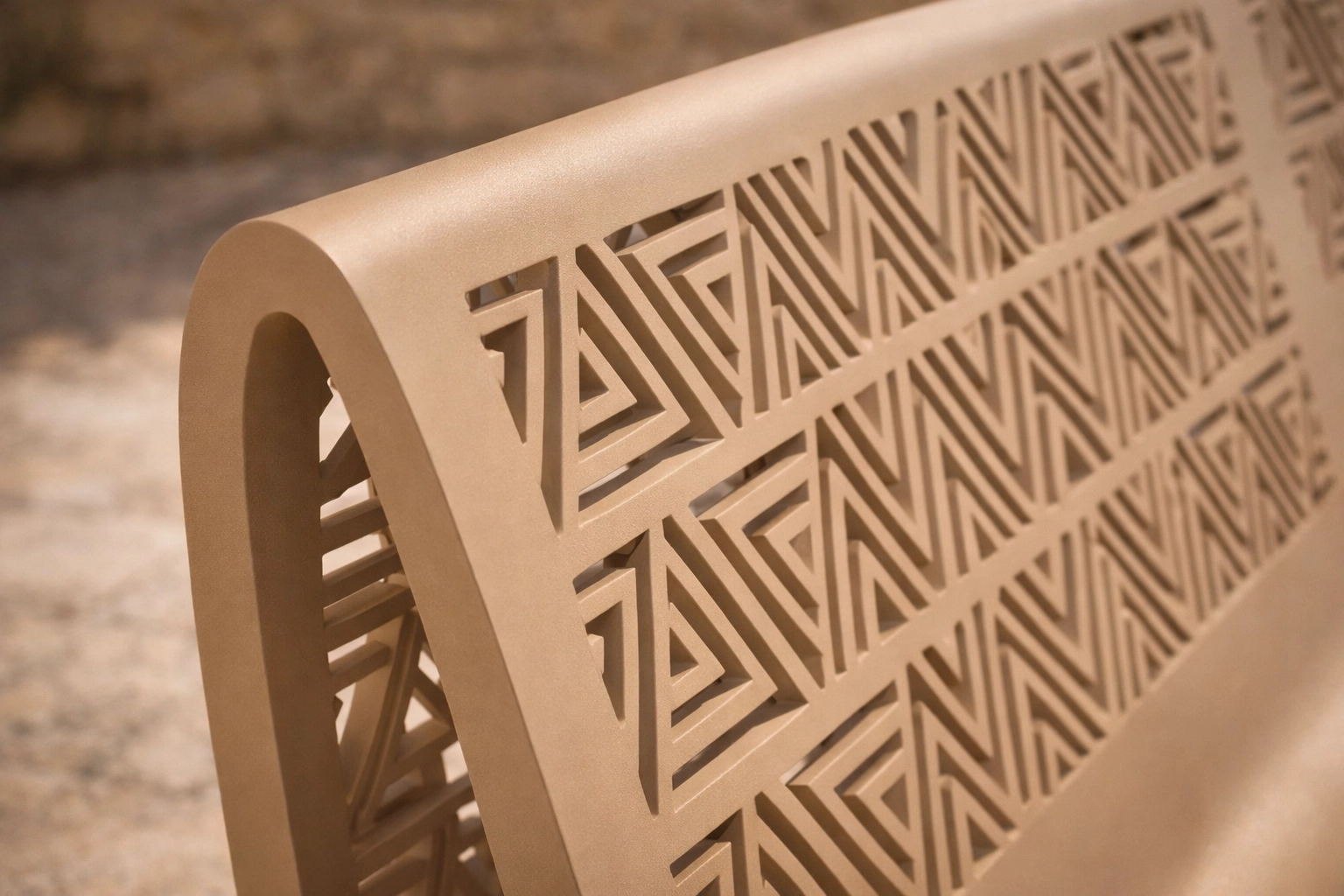 Les assises THAL S, disponibles en fauteuil et en banc sont l’âme de cette collection. Leur gracieuse structure très arrondies rappelle les dunes entourant les pyramides, elles-mêmes représentées par les motifs triangulaires découpés avec précision dans l’acier ciré. Cet envoûtant modèle peut aussi bien s’adapter à un environnement urbain qu’un intérieur chic. Ces assises embrassent l’esthétisme et le symbolisme des pyramides, une des plus vieilles constructions humaines encore intact.